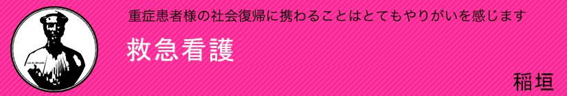 私は認定看護師3年目です。3次救急の現場では様々な症例を学ぶことができる病院です。是非、一緒に働き一緒に様々な症例を学び、患者様を笑顔にできる看護師を目指しませんか。